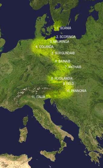 Tra il 488-493 d.C. i Longobardi, guidati da Godeoc e poi da Claffone, attraversarono la Boemia e la Moravia e si insediarono nelle terre a ridosso del medio Danubio lasciate libere dai Rugi a nord del Norico (Austria) dove, grazie alla fertilità della terra, poterono rimanere per molti anni e per la prima volta entrarono a stretto contatto con la civiltà romana. Giunti presso il Norico, i Longobardi ebbero conflitti con i nuovi vicini, gli Eruli, e finirono per stabilirsi nel territorio detto “Feld” (forse la Piana della Morava, situata a Est di Vienna).