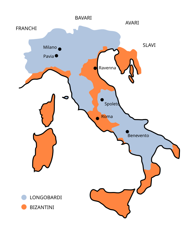 I Longobardi erano arrivati in Italia per restarci, gettando scompiglio nel delicato equilibrio della convivenza tra ostrogoti e bizantini. Dal 568, anno in cui è databile il loro ingresso sulla nostra penisola, si stanziarono a Nord per poi diffondersi a macchia d’olio fino a Benevento, relegando i bizantini a zone circoscritte e marginali, come il cosiddetto Esarcato di Ravenna e parte del Sud Italia. Roma non sembrava essere toccata da questa nuova popolazione barbarica, ma i rapporti ovviamente non potevano essere evitati del tutto. Infatti, come ben noto, i barbari si avvicinarono al Cristianesimo e spesso attraverso una “forma semplificata” detta Arianesimo (escluso i Franchi) e i Longobardi non fecero eccezione: erano ariani, di un arianesimo intriso di elementi fortemente pagani e ostili alla religione romana.