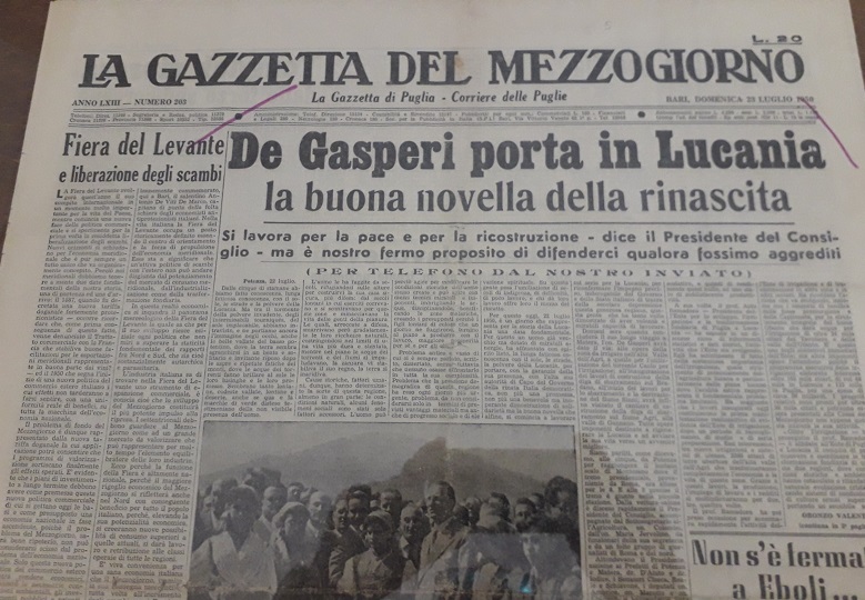 Il viaggio di Alcide De Gasperi a Matera, avvenuto il 23 luglio 1950, rappresenta un momento cruciale nella storia italiana del dopoguerra. Matera, a quel tempo, era nota per le condizioni di estrema povertà e degrado in cui versavano i suoi abitanti, molti dei quali vivevano nei celebri “Sassi,” grotte scavate nella roccia senza servizi igienici né acqua potabile. De Gasperi, allora Presidente del Consiglio, fu profondamente colpito dalla realtà che vide con i suoi occhi. Le condizioni di vita nei Sassi, che Carlo Levi aveva descritto nel suo libro Cristo si è fermato a Eboli, gli apparvero ancora più drammatiche dal vivo. Durante la visita, il leader trentino si confrontò con una situazione che simboleggiava le profonde disuguaglianze sociali e il ritardo economico del Mezzogiorno.