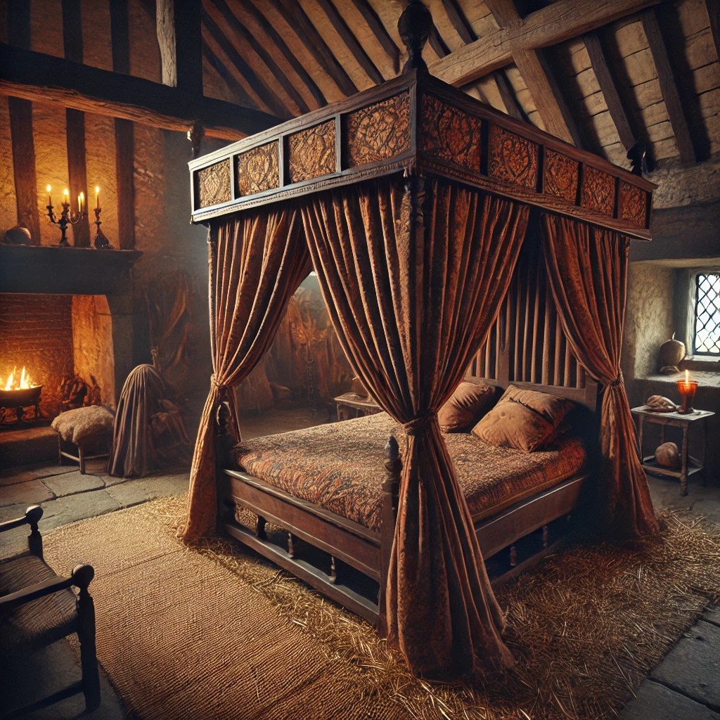 I nobili e i ricchi dormivano su letti rialzati e molto larghi, spesso condivisi con il coniuge, i figli piccoli o servitori. I letti avevano baldacchini con tende per protezione dal freddo e dagli insetti, si dormiva spesso semi-seduti, con molti cuscini dietro la schiena.